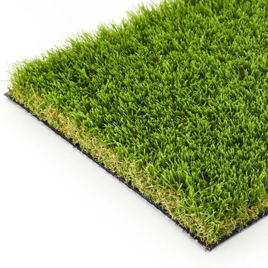 Complete artificial grass installation in luxury garden area, featuring UV-protected synthetic turf with advanced drainage system for year-round greenery.