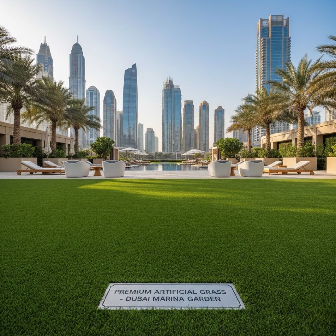 For Dubai installations, we recommend: 1) UV-protected premium grass (30-40mm pile) for gardens and outdoor areas with maximum sun exposure, 2) Pet-friendly grass with antibacterial treatment and enhanced drainage for pet play areas, 3) Short-pile sports grass (15-25mm) for putting greens and play areas, 4) Commercial-grade grass with high traffic rating for hotel courtyards and public spaces, 5) Heat-resistant indoor grass for balconies and terraces. Each selection considers Dubai's extreme sun exposure (UV ratings 8+), sand/dust accumulation, drainage requirements, and specific usage from residential landscaping to commercial applications.